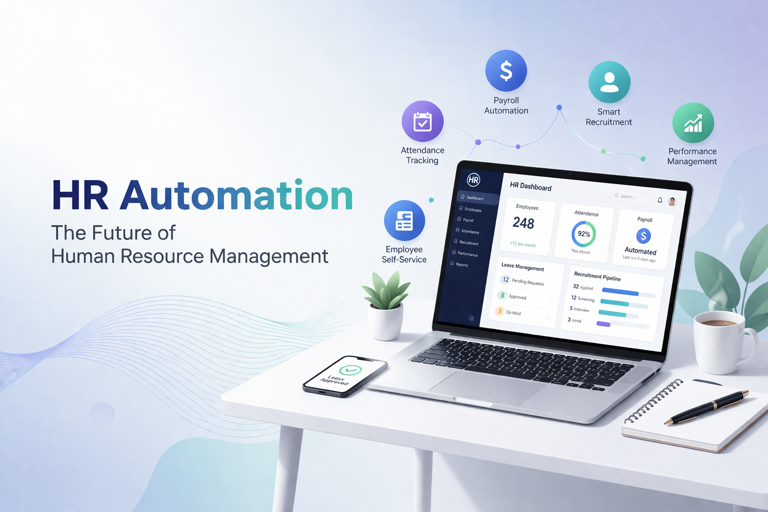 HR automation is the process of using HR software or Human Resource Management Systems (HRMS) to perform HR tasks automatically. Instead of managing employee records on paper or spreadsheets, companies now use digital systems to manage all HR activities in one place. HR automation helps HR departments manage employee data, salaries, attendance, leave requests, and performance reports more efficiently.
